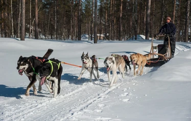 A team of huskies pull you across snowy forests and frozen swamps. The dogs love it as they were born to do it. There is something very magical in exploring the wilderness with a pack of dogs pulling your sled.